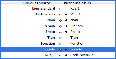 - Mettez les rubriques sources et les rubriques cibles correspondantes face à face.