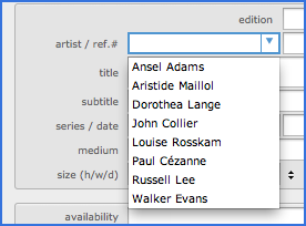 Create the records of your artists before creating records in the Works module. This will allow you to select the artist name in the drop down list, avoiding typing errors (see figure below).
