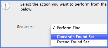 Extend Found Set - constrains the search result to omitted records by previous research and adds the result to all the records already found.