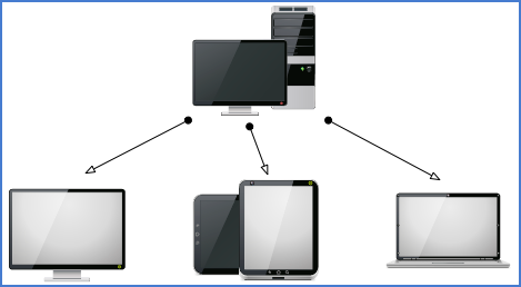 vGallery can be shared by multiple workstations at the same time over a local or remote network. The computer that physically hosts vGallery, functions as a server, and the other computers and devices (Mac, PC, iPad, iPhone), as clients.