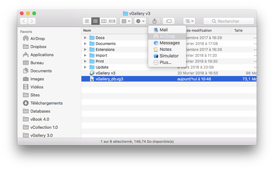 Si vous êtes sur Mac, vous pouvez copier le fichier vGallery_db.vg3 sur votre mobile iOS via AirDrop sans passer par un câble.