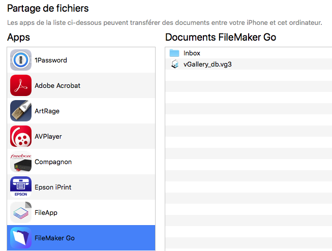 - en copiant vGallery dans FileMaker Go pour une utilisation locale.